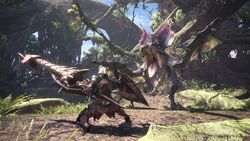 Yian garuga is a large monster in monster hunter world (mhw).